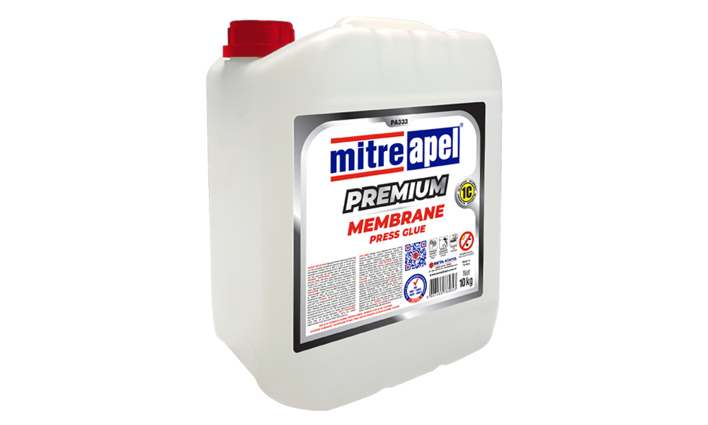 MİTREAPEL Membran Pres tutkalı, otomatik balon ve vakum membran pres makinelerinde kullanılan, PVC membran folyoları MDF malzemeye yapıştırma işlemlerinde uygulanan poliüretan esaslı su bazlı bir dispersiyon tutkaldır. Tek komponentli ve çift komponentli olmak üzere iki çeşidi vardır. İki komponentli membran pres tutkalı, belli oranda sertleştirici ile karıştırıldığında daha yüksek bir ısı dayanımı elde edilir.